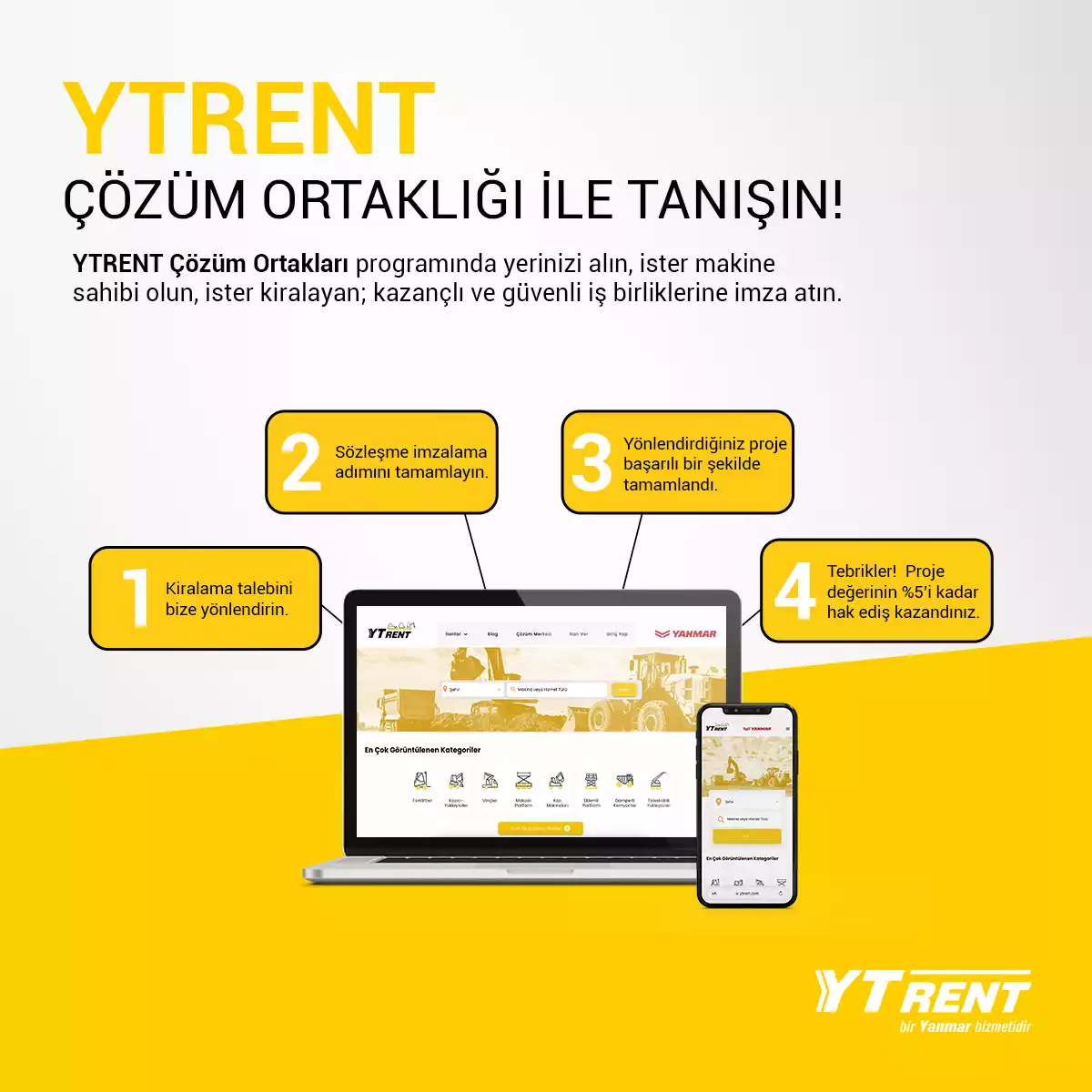 YTRent Çözüm Ortakları programında yerinizi alın, ister makina sahibi olun, ister kiralayan; kazançl...